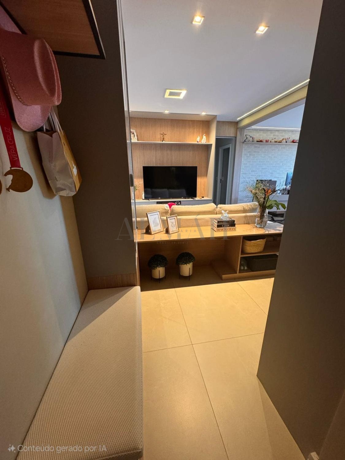 Sendo 2 suítes, lavabo, cozinha, lavanderia, sala com varanda estendida e churrasqueira, 2 vagas laterais e cobertas, teto rebaixado, projeto de iluminação, porcelanato, móveis planejados em todos os ambientes e depósito privativo.